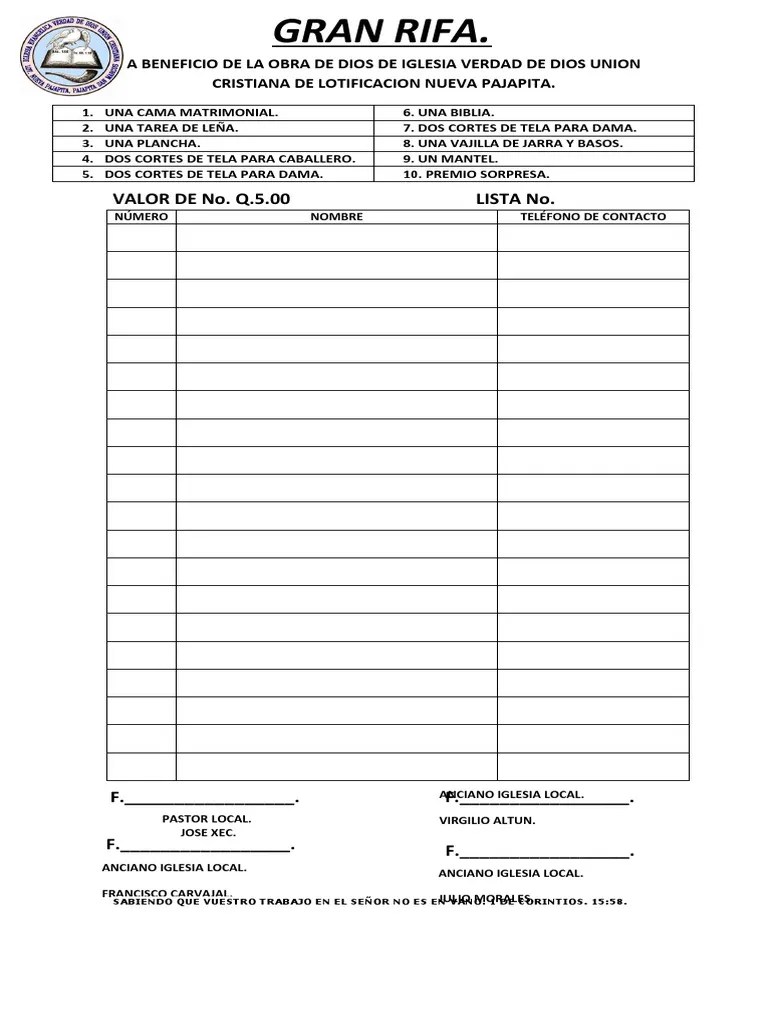 Ejemplos De Rifas A Beneficio / Excel Formato